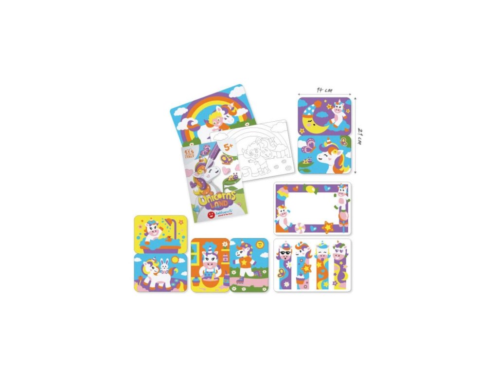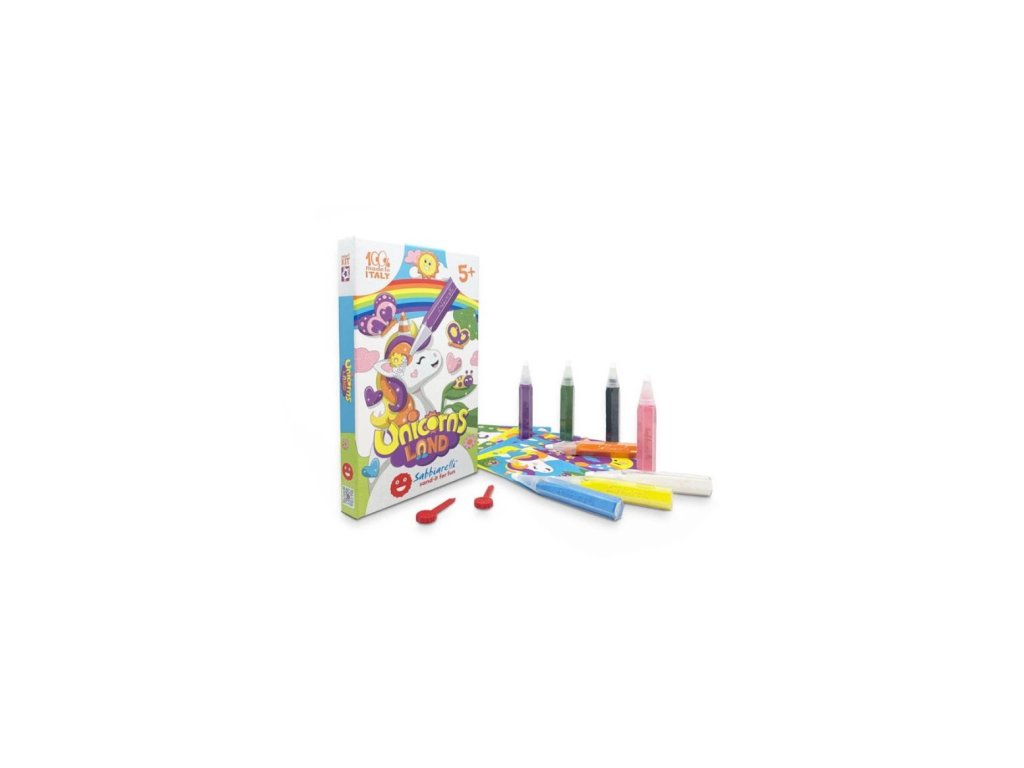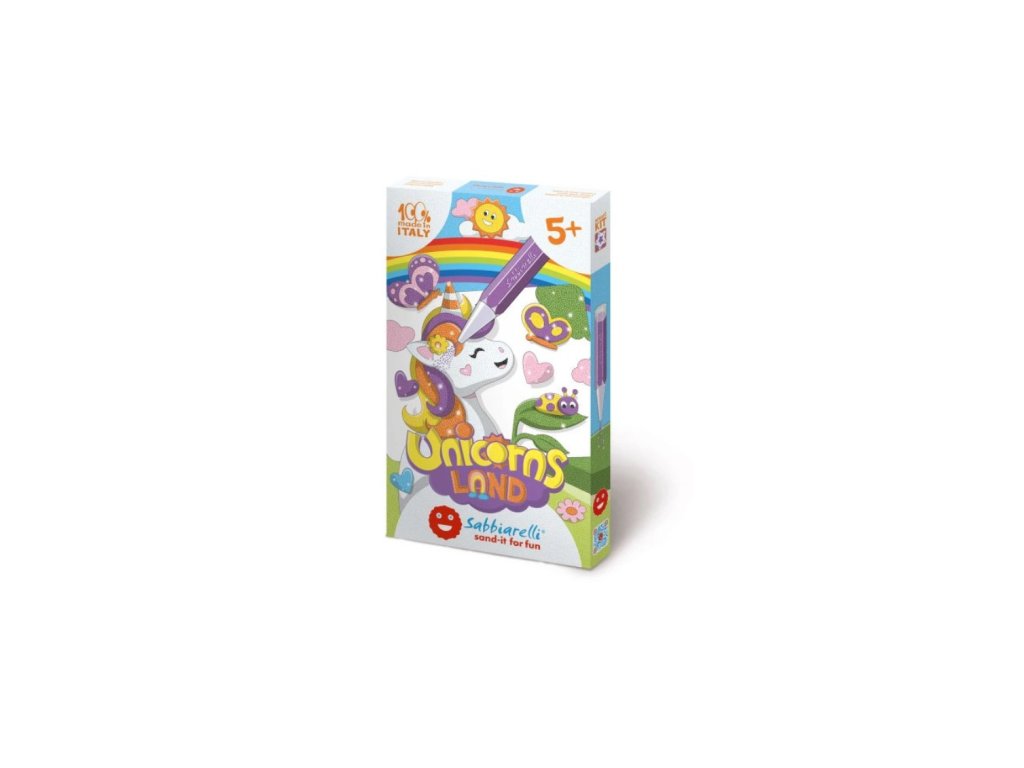 Sada obsahuje 8 barevných pískových per Sabbiarelli®, 2 škrabky, 6 kreseb, rámeček a 4 záložky, vše inspirované kouzelným světem jednorožců, pro mnoho kreativních činností v oblasti vybarvování písku.