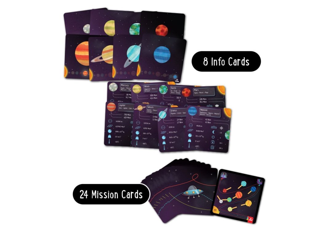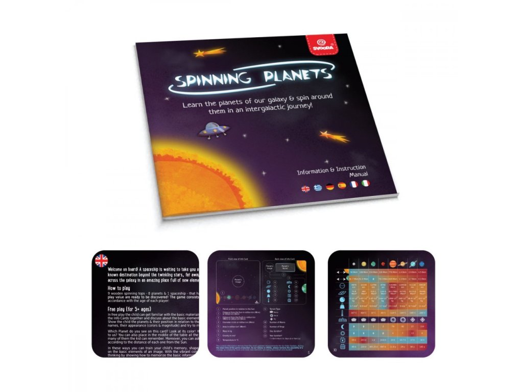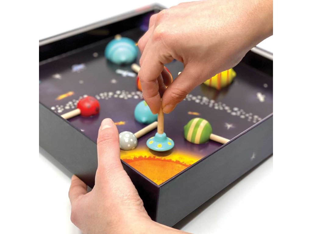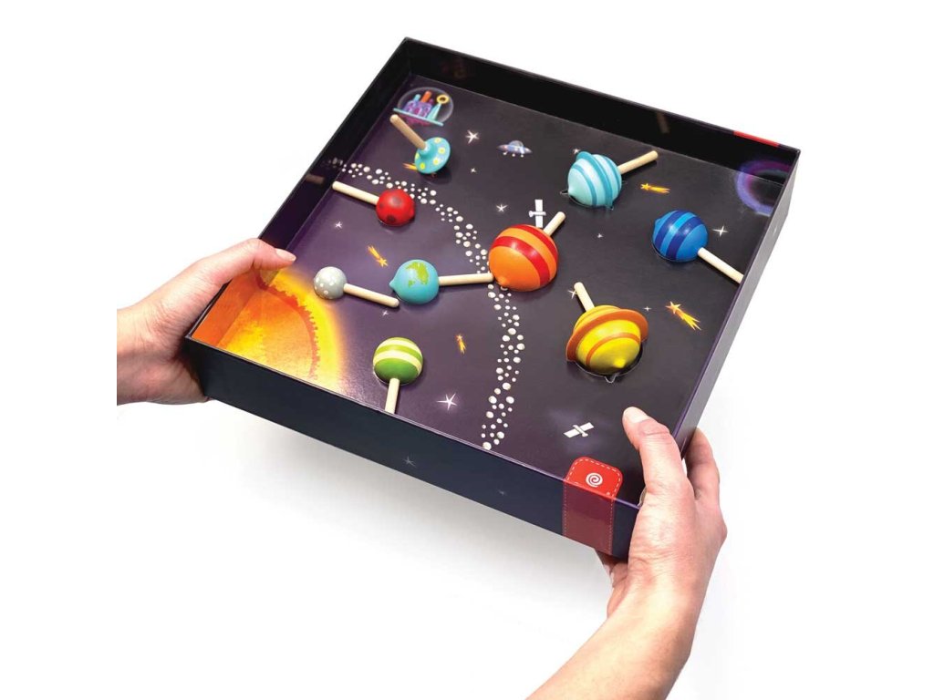 Poznejte planety naší Galaxie a otáčejte se kolem nich na mezigalaktické cestě. Rotující planet je kreativní a inovativní hra, která vás poučí o naší sluneční soustavě, rozvíjí vaši jemnou motoriku a koordinaci rukou a očí a posiluje kreativitu a prostorové vnímání! Dle věku dítěte můžete hrát odpovídajíci úroveň hry a zapojení jednotlivých součástí, doporučujeme už pro děti od 5 let.